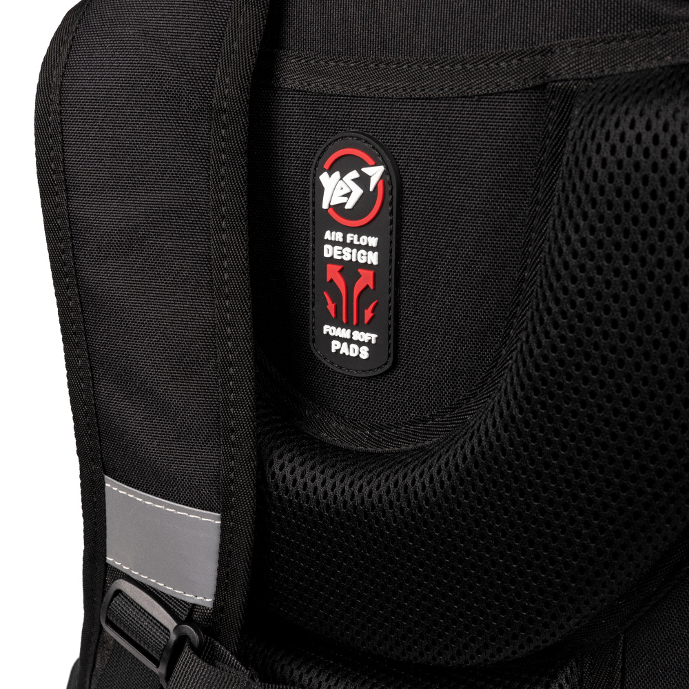 Рюкзак S-91 з ортопедичною спинкою від торгової марки Yes ущільнений по всьому корпусу спіненим поліетиленом і добре тримає форму. Передня панель та кишеня рюкзаку виготовлені з EVA матеріалу, литого або м’якого, залежно від дизайну, корпус ущільнений еластичним EVA матеріалом, що забезпечує надійний захист вмісту. Зовнішній матеріал рюкзака – міцний водовідштовхувальний поліестер.