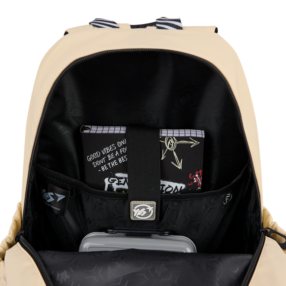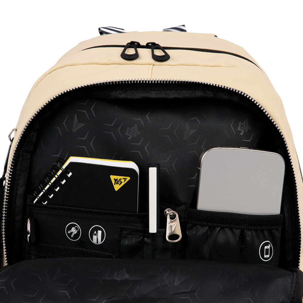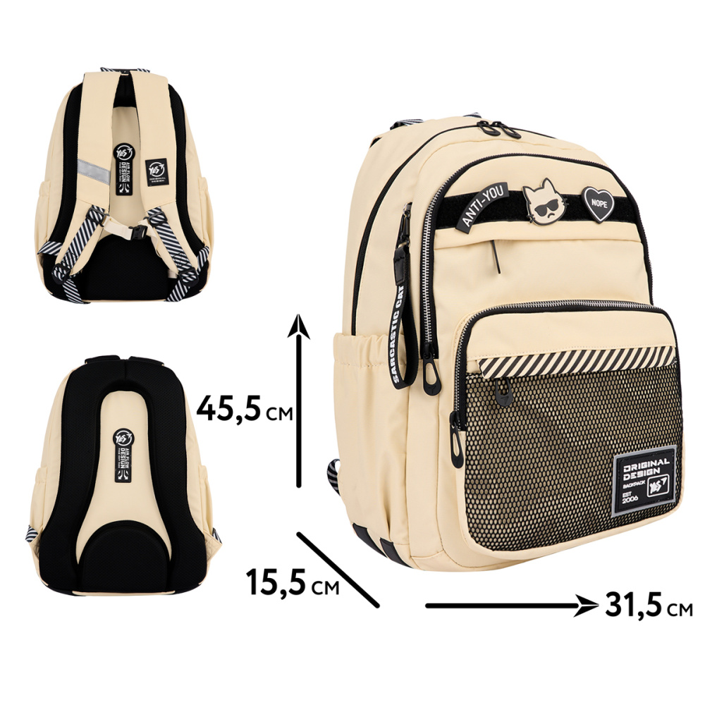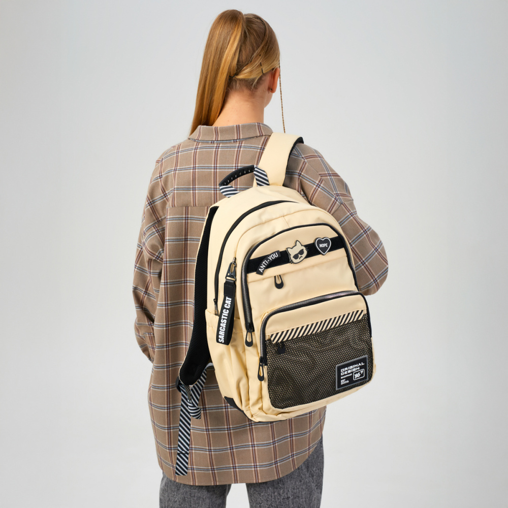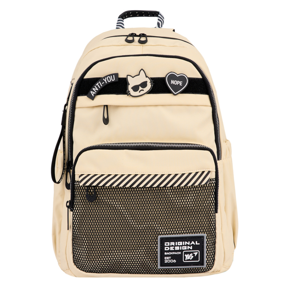 Виконаний в класичному бежевому кольорі, рюкзак Yes TS-47 Anti-You ідеально підходить для будь-якого образу, від шкільного до повсякденного. Головною особливістю рюкзака є липка стрічка та змінні патчі, які дозволяють легко змінювати вигляд аксесуара на власний смак.