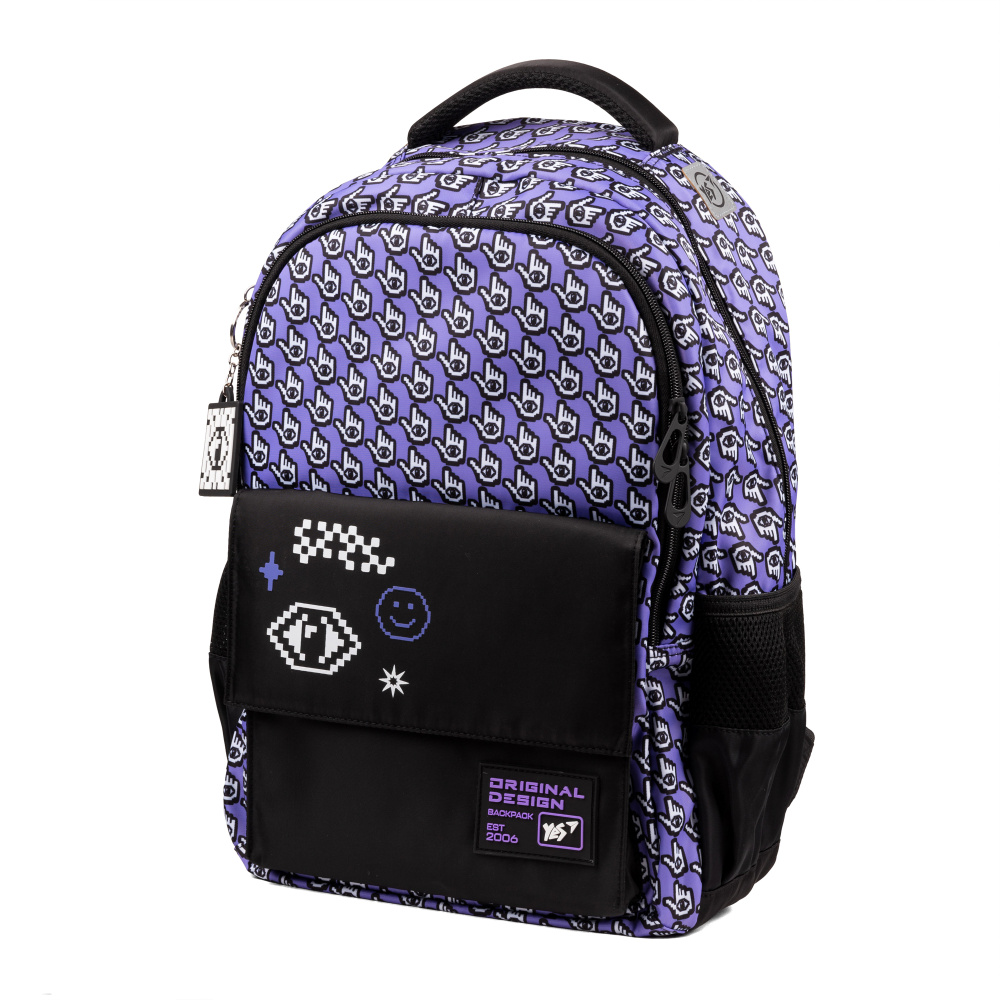 Неординарне поєднання фіолетового та чорного кольорів в дизайні рюкзаку Yes All-Seeing Eye TS-48, надає йому стильності та елегантності, оскільки патерн «ока, що бачить все» - це втілення трендів від відомих дизайнерів. Додатковою прикрасою стає брелок-підвіска, яка робить цей аксесуар ще більш вишуканим та допоможе підкреслити індивідуальність.