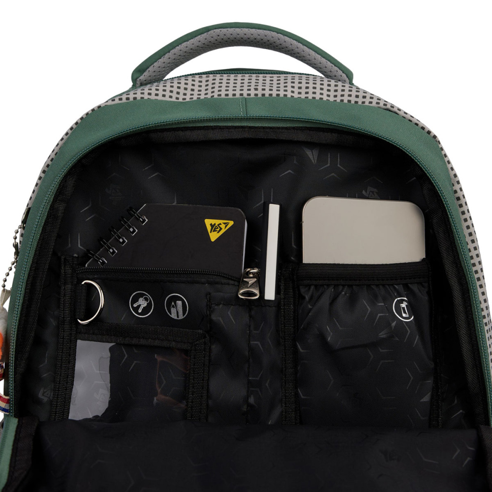 Рюкзак TS-48 від бренду Yes має два просторих відділення для розміщення всіх необхідних речей: підручників, зошитів, а також, наприклад, спортивної форми для відвідування фітнес клубу після школи. Якщо треба взяти з собою планшет або ноутбук, у середині є кишеня з захисною флісовою підкладкою спеціально для гаджетів. І, звичайно, кишеня для телефону.