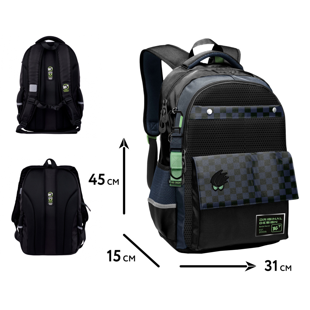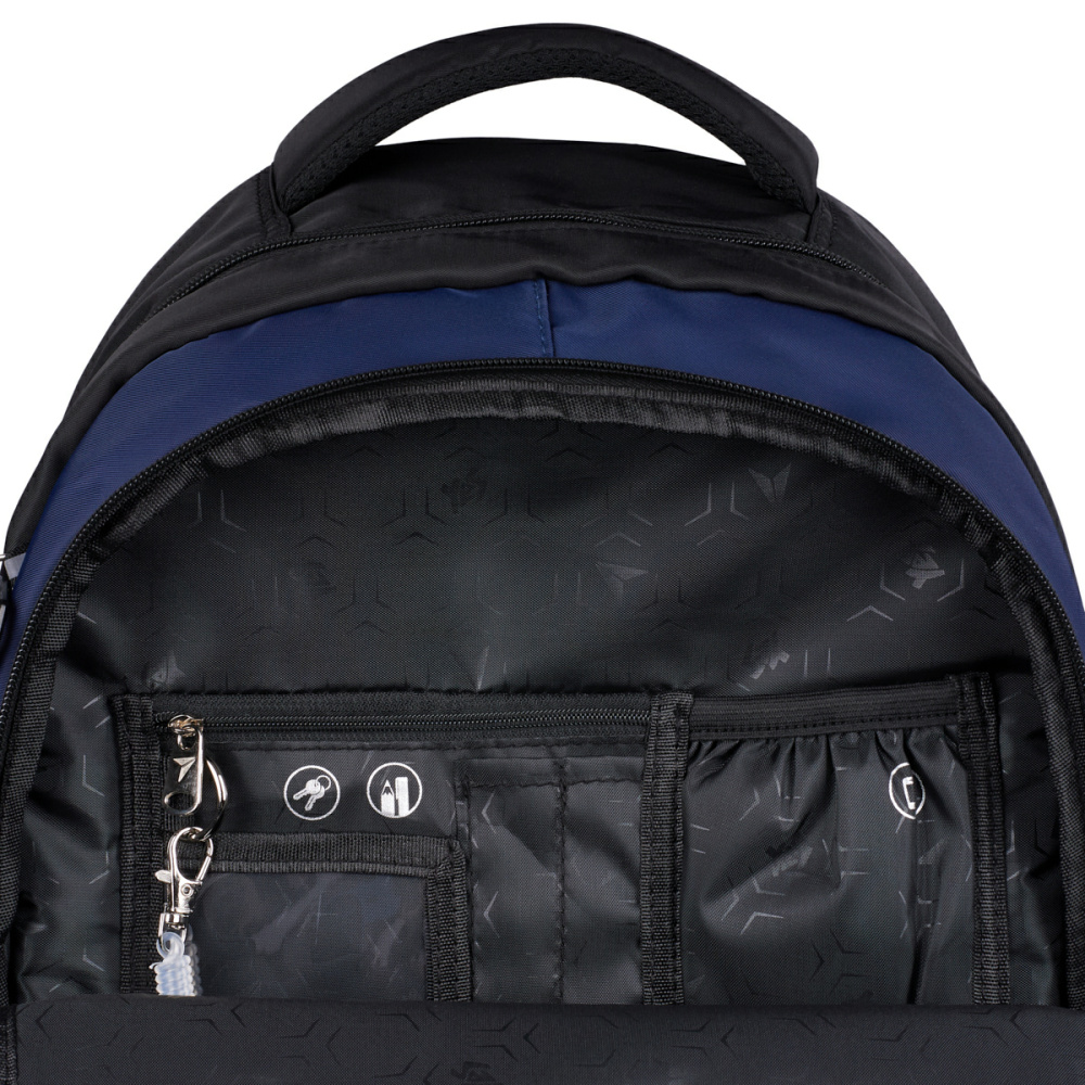 - 2 просторі передні кишені для шкільного приладдя, пеналу та інших речей невеликого розміру;