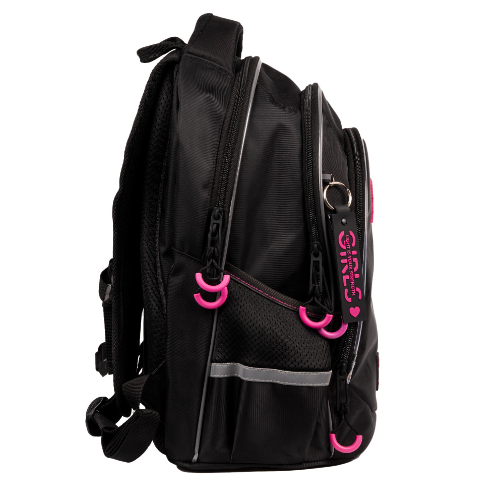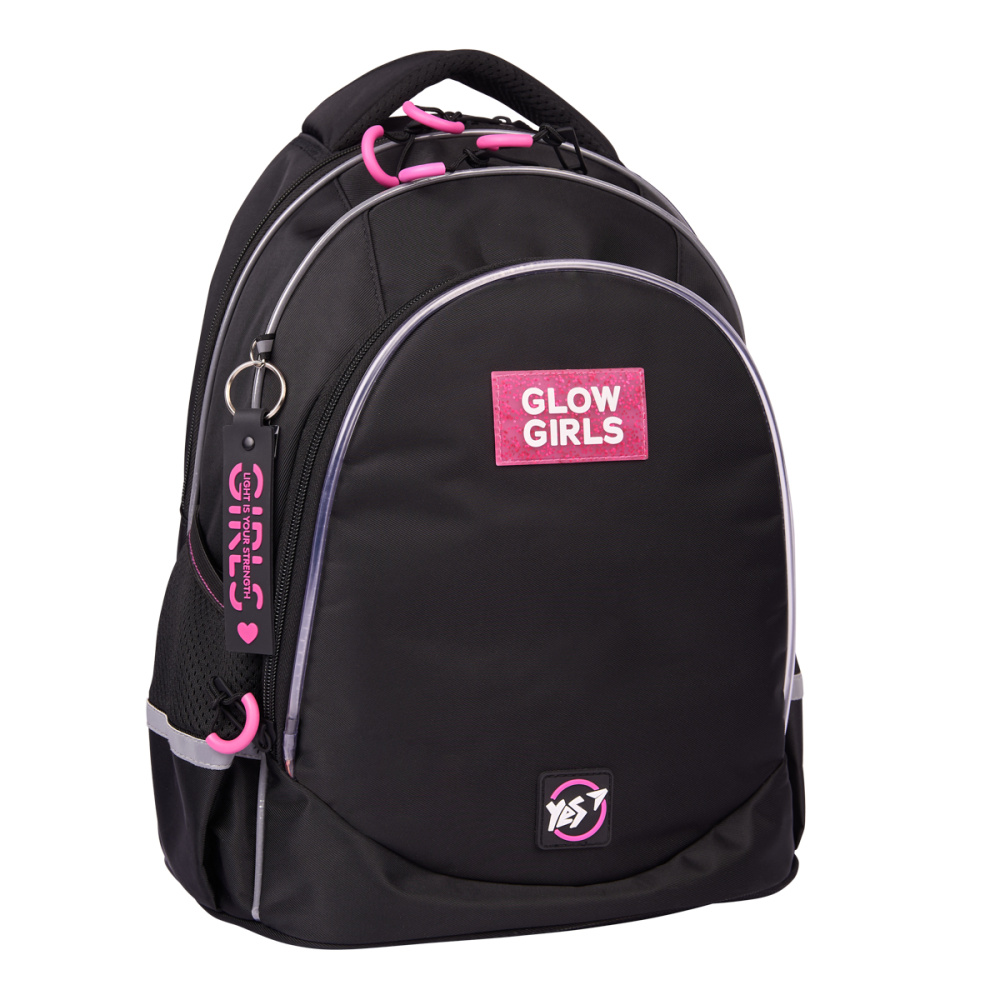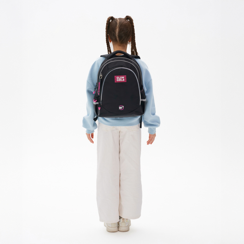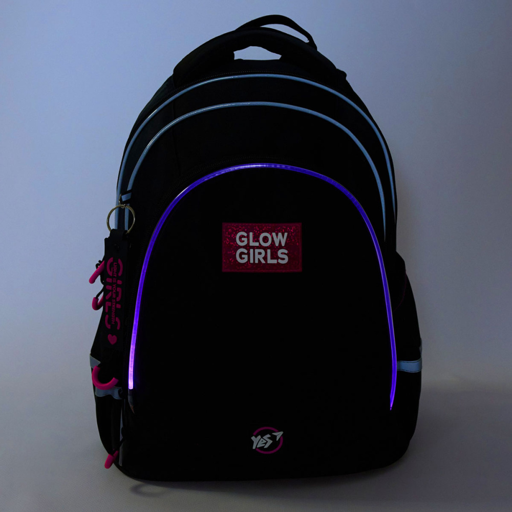 Рюкзак для дівчинки-підлітка Yes TS-52 Glance має ефектний і незабутній вигляд завдяки стильному чорному кольору, доповненому кордом з LED підсвіткою. Такий дизайн не лише додає сучасного вигляду, а й забезпечує додаткову видимість у темний час доби, що робить рюкзак не тільки модним, але й практичним.