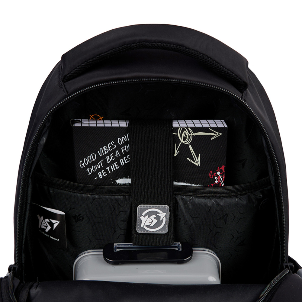 Рюкзак TS-54 від бренду Yes має два основні відділення та простору кишеню на передній панелі. Зошити, підручники, шкільні папки, пенал зручно розмістяться всередині. Для телефону та планшету передбачені внутрішні кишені з флісовою підкладкою. Для документів або інших дрібних речей – внутрішні кишені на блискавці.