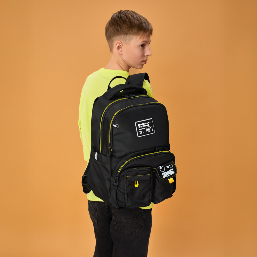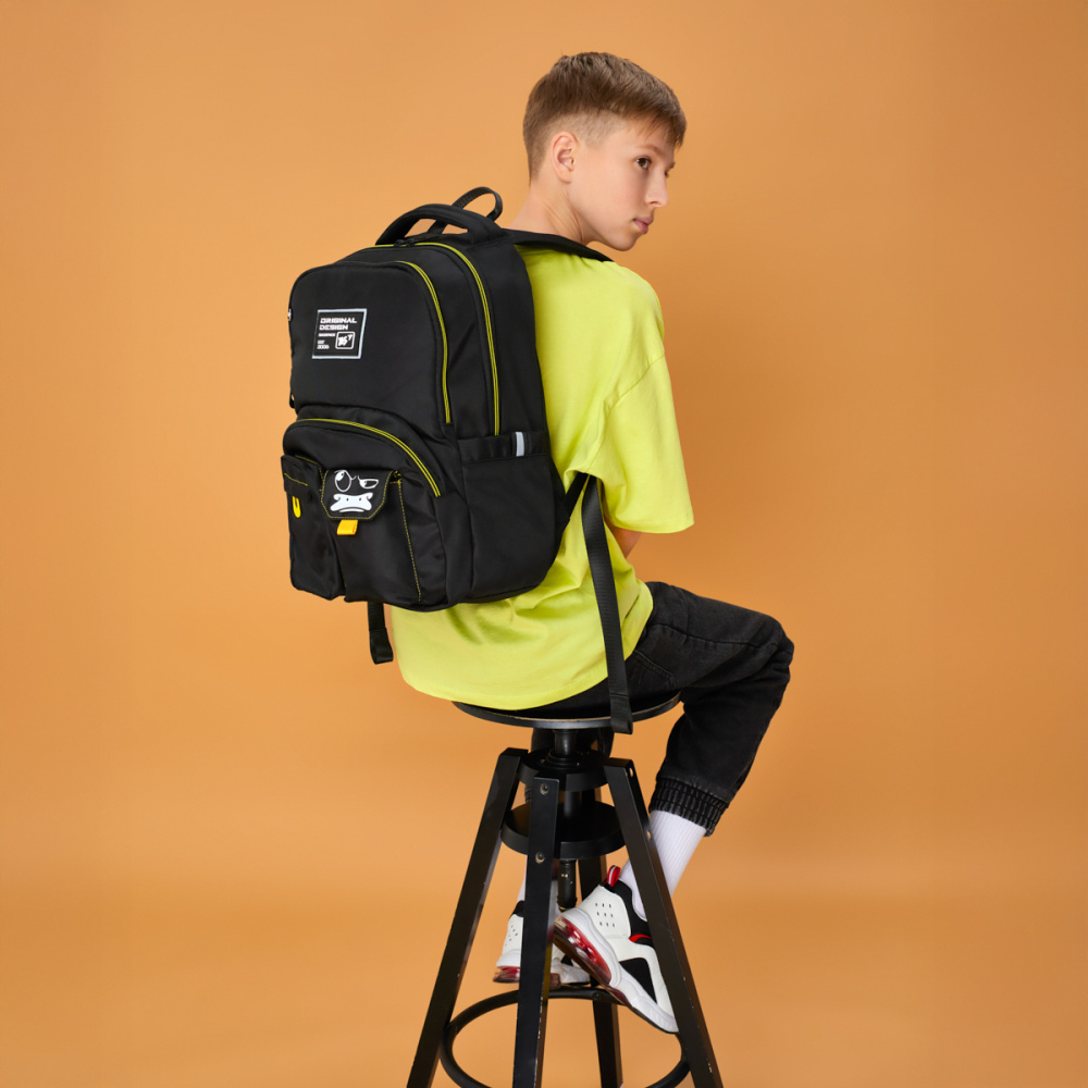 Два великих відділення, одна містка передня кишеня, ретельно розроблений внутрішній органайзер допоможуть тримати у порядку всі шкільні речі та канцелярське приладдя. В бокових кишенях розміститься пляшка з водою або термос, а також інші дрібні речі.