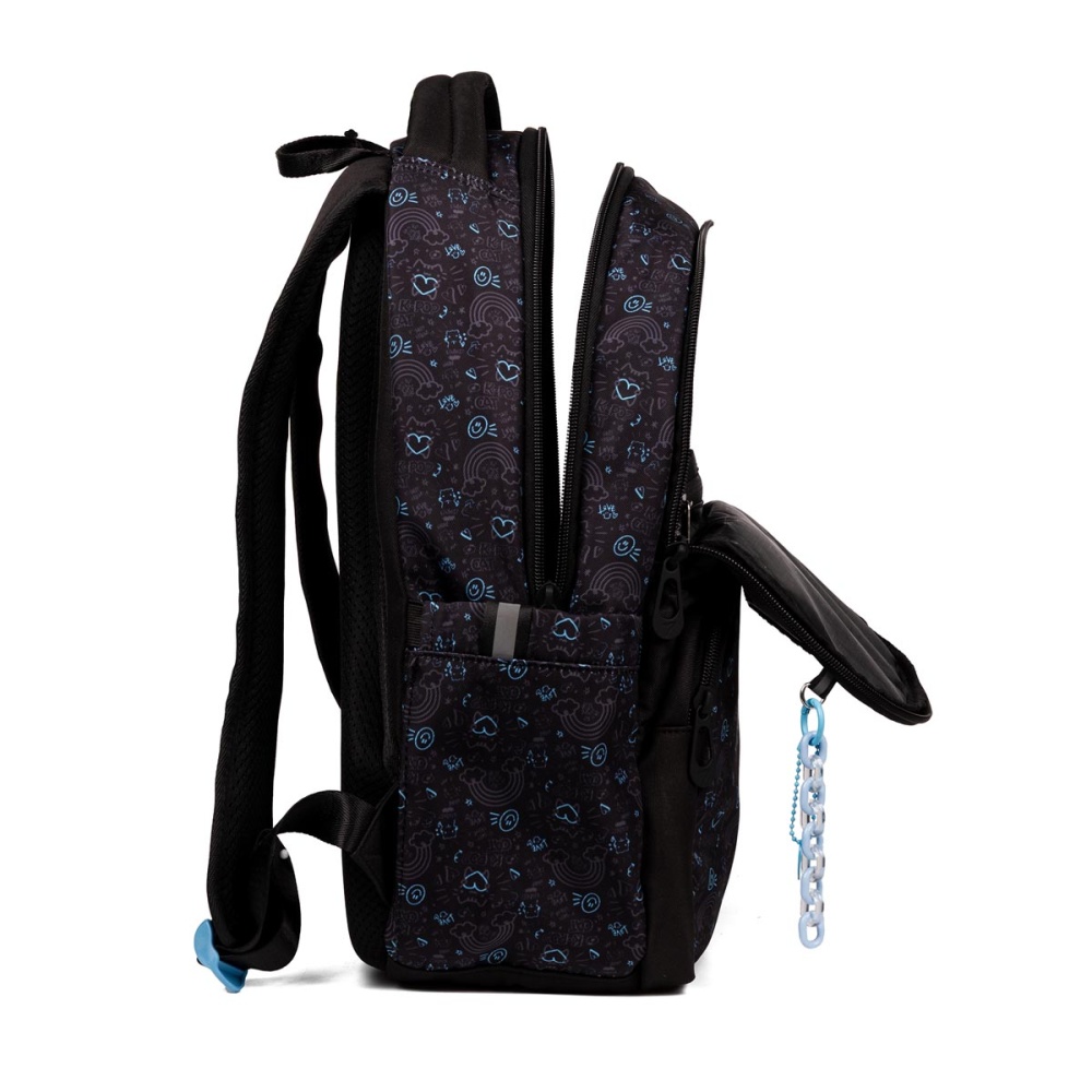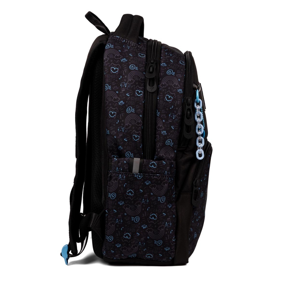 Два великих відділення, одна містка передня кишеня, ретельно розроблений внутрішній органайзер допоможуть тримати у порядку всі шкільні речі та канцелярське приладдя. В бокових кишенях розміститься пляшка з водою або термос, а також інші дрібні речі.