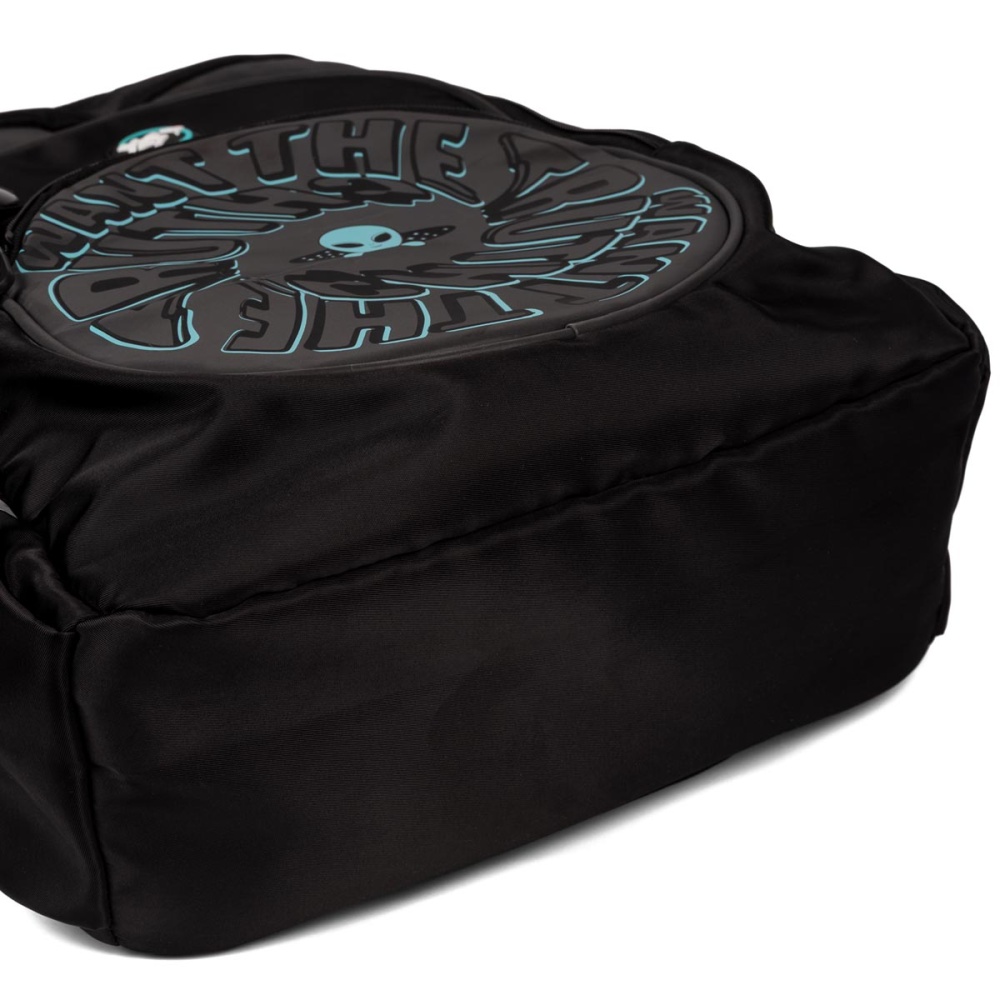 Поєднання чорного кольору рюкзака з тканиною з ефектом відбивання світла, стильний брелок – все це створює цікавий і неординарний образ.