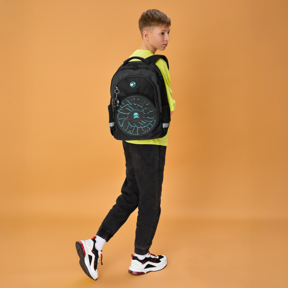 Два великих відділення, одна містка передня кишеня, ретельно розроблений внутрішній органайзер допоможуть тримати у порядку всі шкільні речі та канцелярське приладдя. В бокових кишенях розміститься пляшка з водою або термос, а також інші дрібні речі.