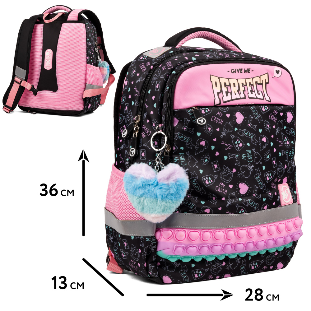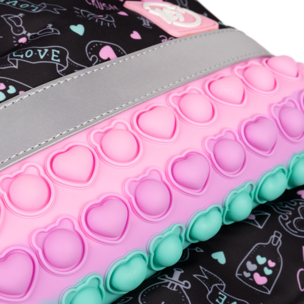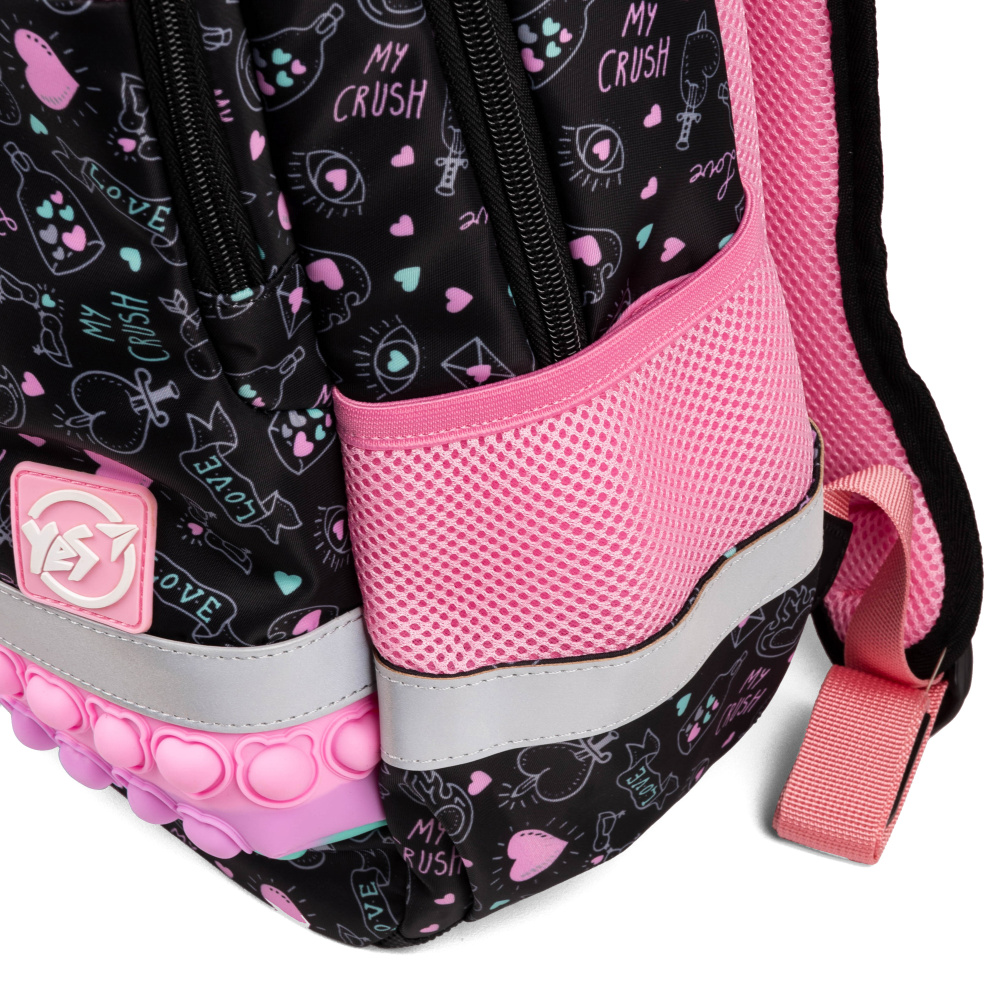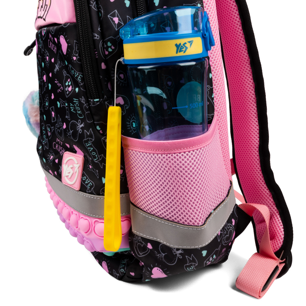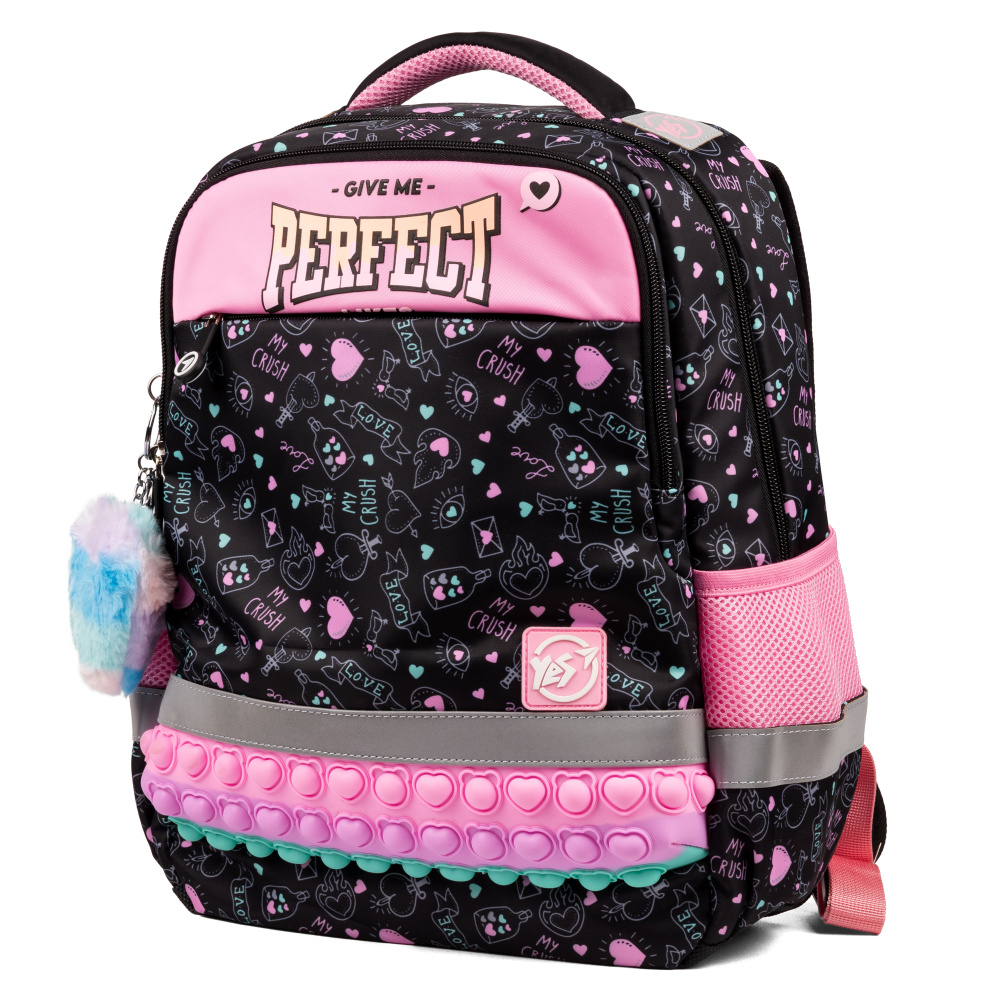 Завдяки контрастним яскравим кольорам, рюкзак Yes Perfect S-52 Ergo не залишить байдужою жодну маленьку модницю. Кожен елемент дизайну привертає увагу та створює виразний образ. А особлива декоративна вставка з ефектом pop-it надає рюкзаку неповторності та чарівності, викликаючи зацікавлення навіть у найвибагливіших дівчаток.