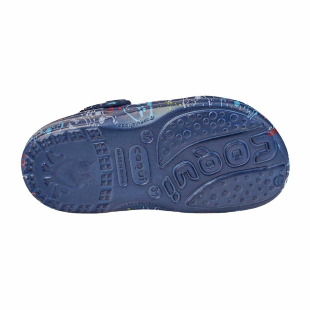 Це яскраві дитячі сабо із барвистим дитячим принтом в синіх відтінках, які точно сподобаються дітям. Модель COQUI 8115 вирізняється оригінальним дизайном, що не залишає дитину непоміченою. Призначені для повсякденного носіння — дому, прогулянок, пляжу, саду.