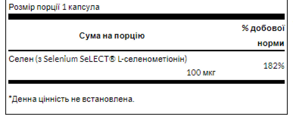 Swanson Selenium є важливим антиоксидантом, який сприяє здоровому серцю, простаті та багатьом іншим органам та системам організму. Кожна високоефективна капсула містить 100 мкг елементарного селену із l-селенометіоніну, органічного джерела цього важливого мікроелемента з високою біодоступністю.