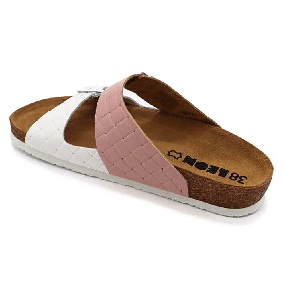 Жіночі шльопанці Leon 4011 - це комфортне взуття, в якому ви зможете ходити довго, не втомлюючись. У їх створенні використовувалися якісні та довговічні матеріали: верх та устілка зі шкіри, прошарок устілки з масажної піни та підошва із зносостійкого поліуретану. Невеликий підйом під п'ятою розвантажує ударне навантаження. Ортопедичне взуття Леон сприяє зниженню навантаження на ноги під час ходьби, перешкоджає виникненню проблем зі стопами.