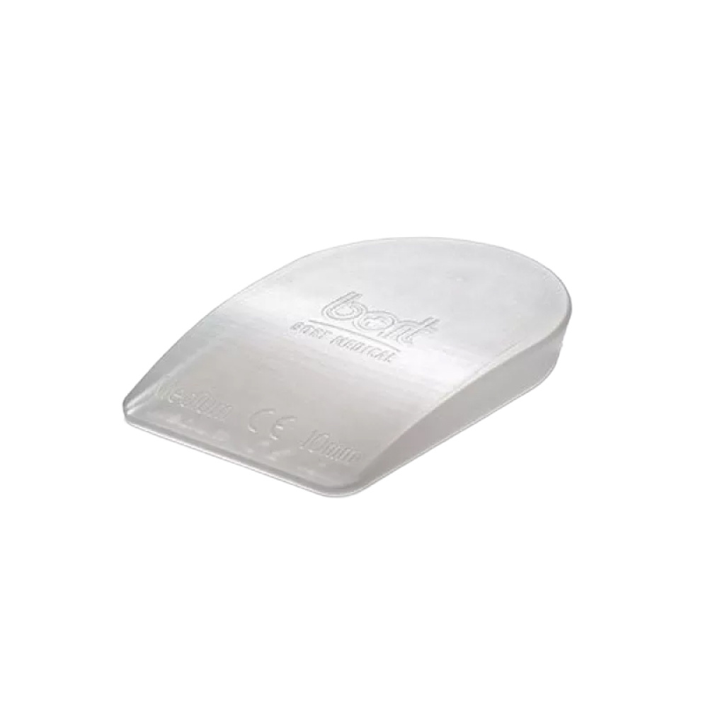 Підп’ятник із медичного силікону з ледь наміченими бортиками добре розвантажує п’ятку та захищає шкіру від надмірного тиску. Пружний еластичний силікон має високу опірність до деформацій і зношування та добре захищає суглоби ніг від перевантаження. Може застосовуватись при незначному укороченні (до 3 мм) однієї кінцівки, може застосовуватися у дітей. Виріб неслизький, добре утримується на місці, п’ятка з нього не зісковзує. Продаються по одному. Застосовуються в будь-якому взутті з закритою п’яткою, яке забезпечує достатню вентиляцію стопи. Висота: 3 мм.