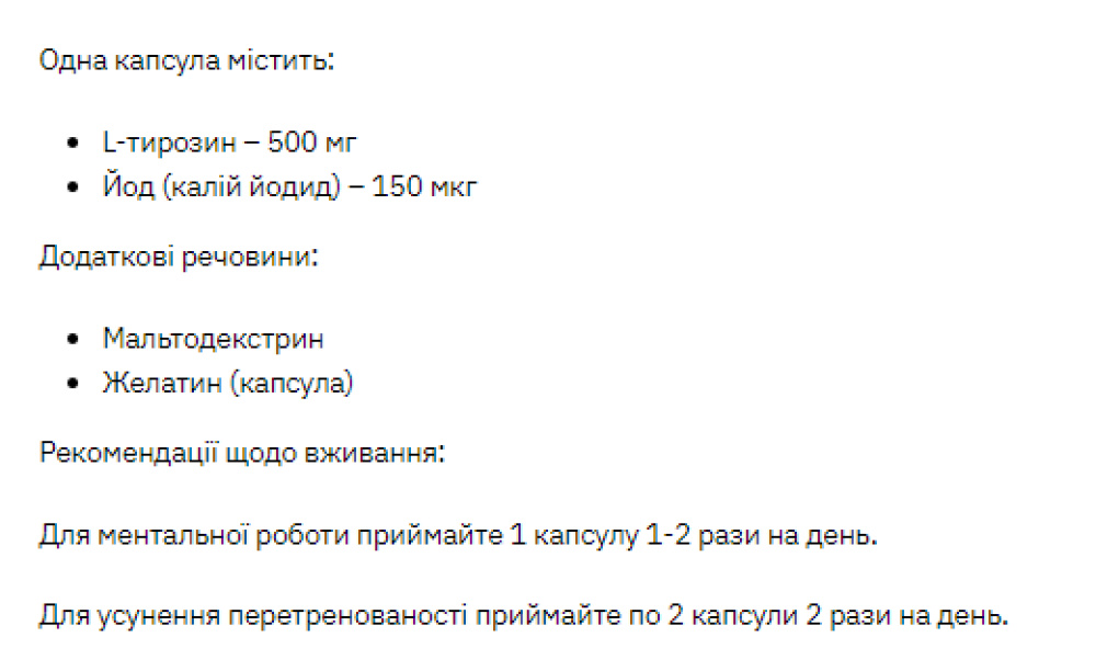 L-тирозин – 500 мг