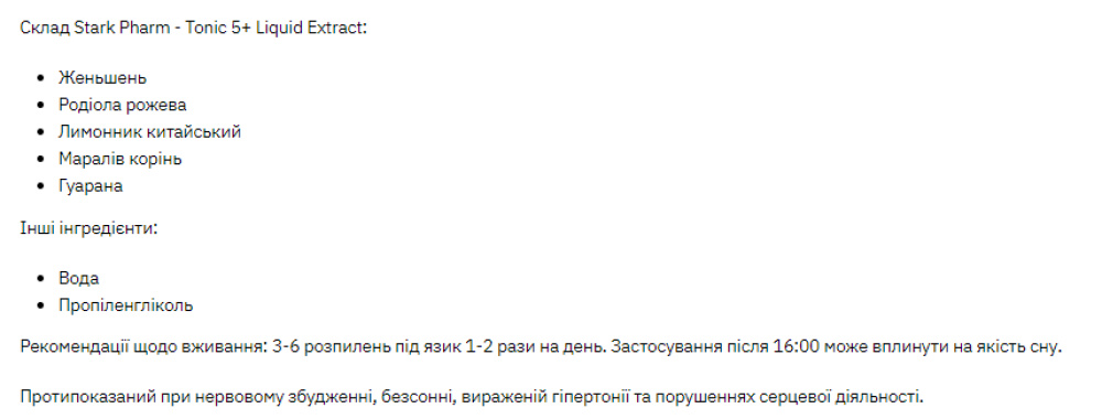 Склад Stark Pharm - Tonic 5+ Liquid Extract: