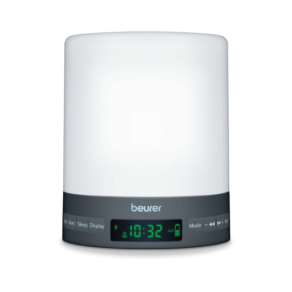 Світловий будильник Beurer WL 50 допомагає засинати природно та прокидатися м’яко завдяки симуляції сходу й заходу сонця. Поєднує функції будильника, нічника, радіо та музичного центру з Bluetooth.