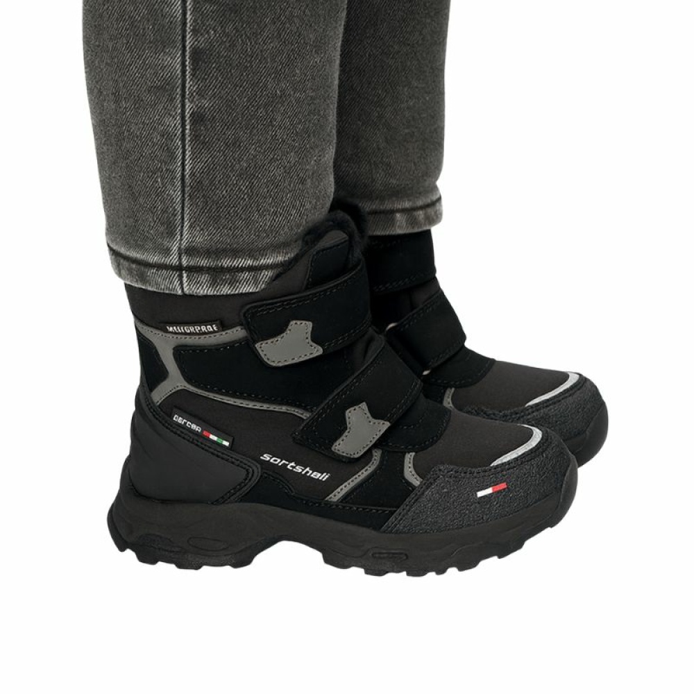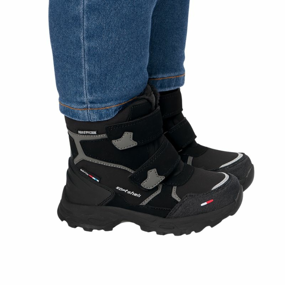 Вшитий язичок ефективно запобігає потраплянню снігу та вологи всередину, а міцна застібка на липучці дозволяє легко одягати та регулювати взуття по нозі, сприяючи розвитку самостійності у дітей.