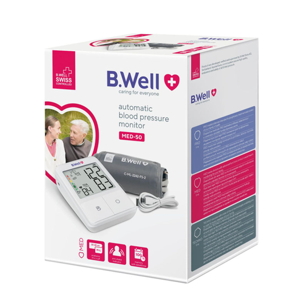 Тонометр B.Well перевірить правильність накладення манжети та відобразить помилки. Прилад має сучасний дизайн, великий дисплей і компактні розміри.