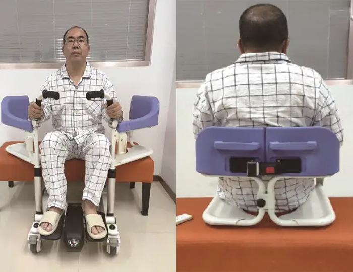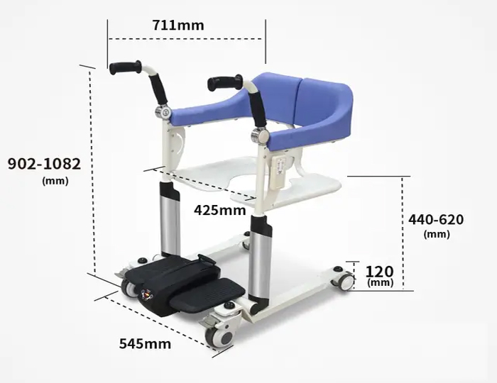 1. Увімкніть живлення за допомогою пульту дистанційного управління або робочої панелі двигуна, натисніть кнопку «Вгору» або «Вниз», щоб встановити сидіння на висоту на 1 см вище, ніж місце, де пацієнт сидить вертикально, відкрийте крісло, а потім перемістіть його до пациенту.