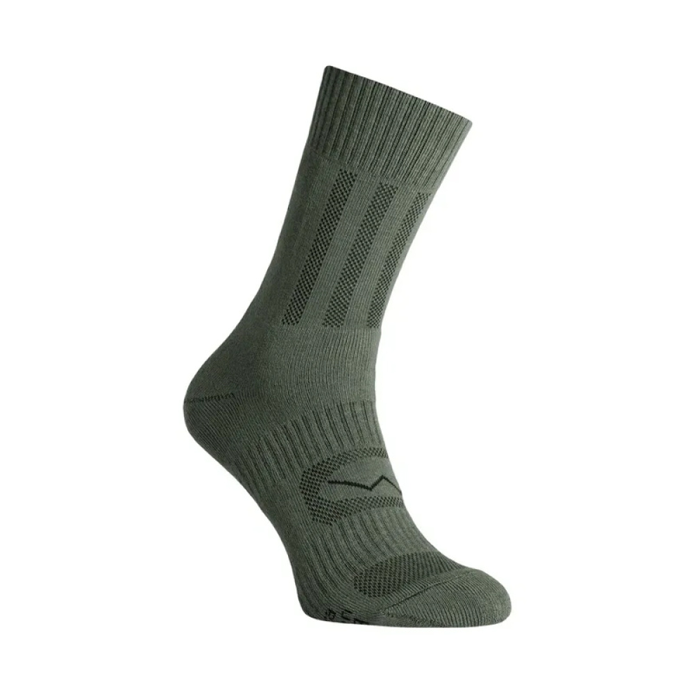 Демісезонні захисні трекінгові шкарпетки середньої висоти з колекції ExtraCotton® для комфорту та захисту ніг у прохолодну погоду. Рекомендовані для використання при температурі від -5°C до +15°C (залежно від активності, одягу та взуття). Модель розроблено зокрема для військових та інших представників силових структур для носіння з тактичними черевиками із середніми та високими берцями, а також підходить для походів (у т.ч. гірських, h ≤ 2500 м), тривалих прогулянок, скандинавської ходьби, полювання та риболовлі.