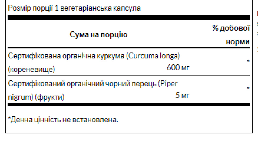 Капсули Swanson Turmeric & Black Pepper містять потужні 600 мг куркуми, збагаченої чорним перцем для забезпечення оптимальної біодоступності. З давніх часів індійські аюрведичні травники використовували куркуму як тонік для серцево-судинної системи та печінки, а також для підтримки комфорту та рухливості суглобів. Сучасна наука виявила, що куркума містить унікальні фітохімічні речовини, відомі як куркуміноїди, які мають потужну антиоксидантну дію та підвищують активність ендогенних антиоксидантних ферментів організму, завдаючи один-два удару, щоб вибити вільні радикали.