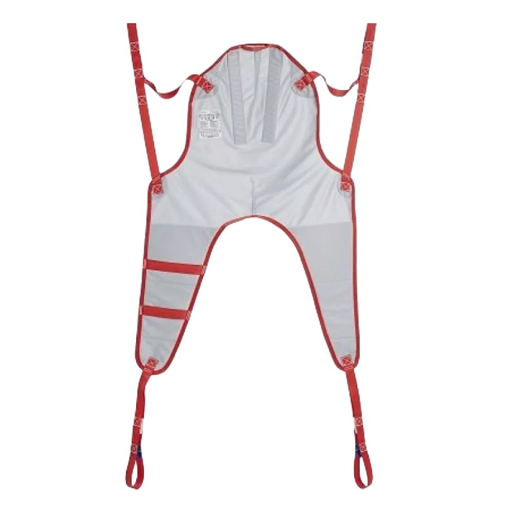 Універсальний слінг для підйомників ARNOLD спрощує піднімання та переміщення маломобільного пацієнта. Завдяки продуманій конструкції слінг легко надягається на пацієнта у положенні сидячи й так само легко знімається. Пацієнт при цьому турбується мінімально. Стропи слінга прошиті петлями на кілька рівнів, що дозволяє зручно налаштувати висоту. Матеріал основи слінга дуже міцний, що у поєднанні з армованими ременями забезпечує високий рівень безпеки. Пом’якшена зона підтримки ніг і висока спинка підвищують комфорт пацієнта під час переміщення.