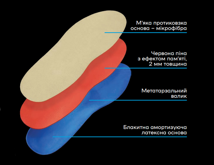 Гнучкі латексні устілки для чутливої та діабетичної стопи. Устілки мають підвищення плесневої кістки для правильного розподілу тиску. Виготовлені з піни з ефектом пам’яті та м’якої поглинаючої мікрофібри.