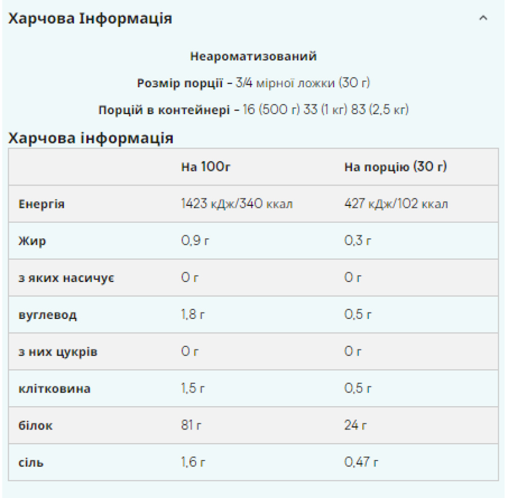 Ми рекомендуємо робити коктейль з 3/4 великий мірної ложки (30 гр) зі 150-250 мл води за 30 хвилин до / або після вашої тренування. І протягом дня між прийомами їжі.