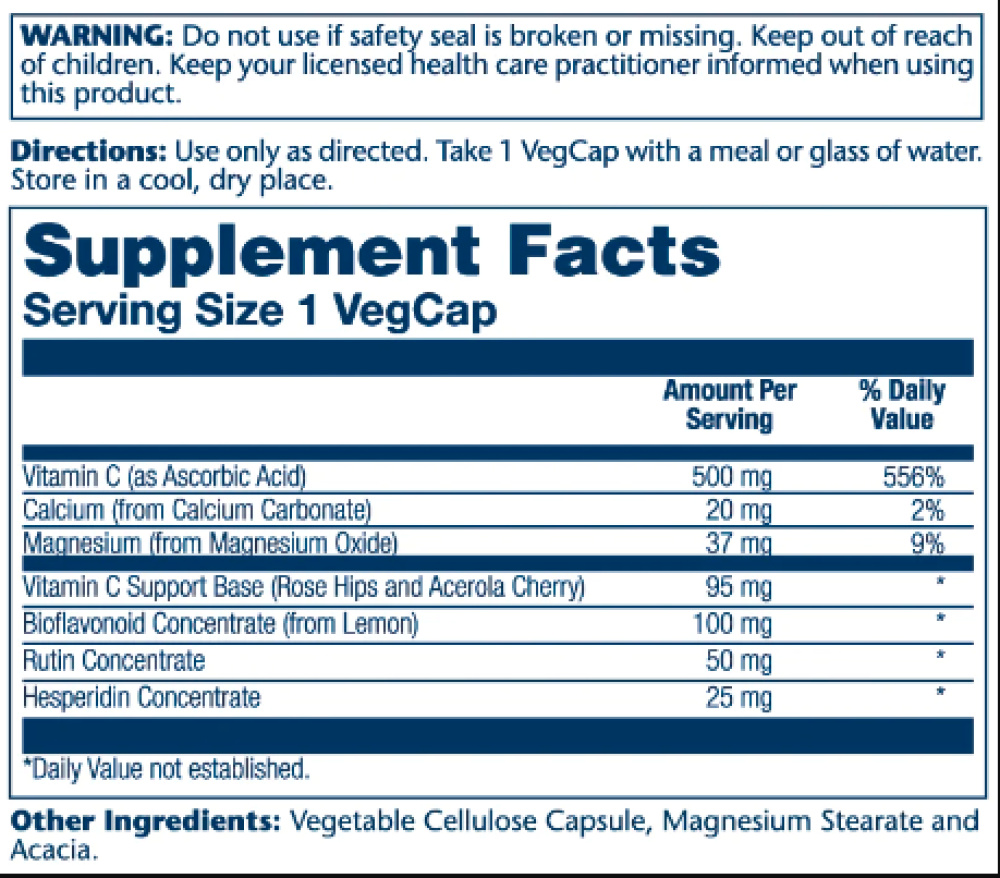 Vitamin C with Bioflavonoid Concentrate 500mg - 100 vcaps