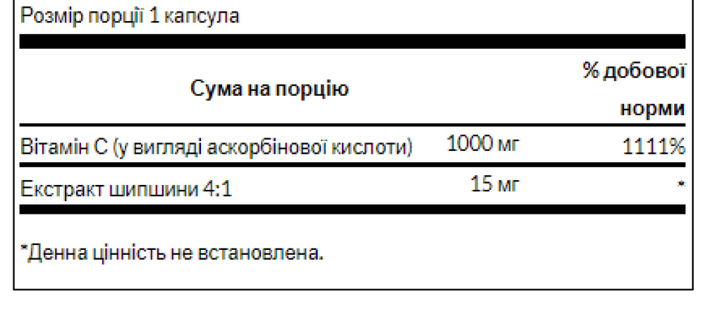 Ці зручні капсули містять вітамін С (у вигляді аскорбінової кислоти) та екстракт шипшини 4:1.