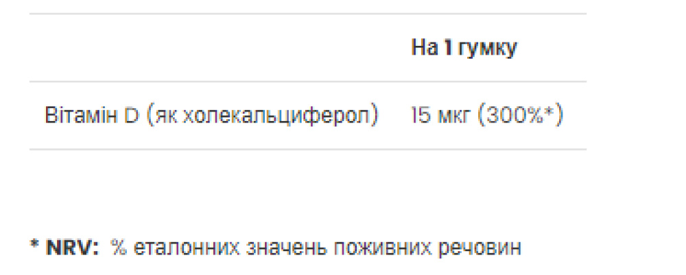 Зручна форма вітаміну D3 у жувальних таблетках. Вітамін D3 допомагає підтримувати здоров'я зубів та кісток, а також забезпечує нормальну роботу м'язів. Вітамін D3 необхідний і дорослим, і дітям, оскільки він позитивно впливає на структуру скелета та допомагає підтримувати необхідний рівень кальцію у крові.