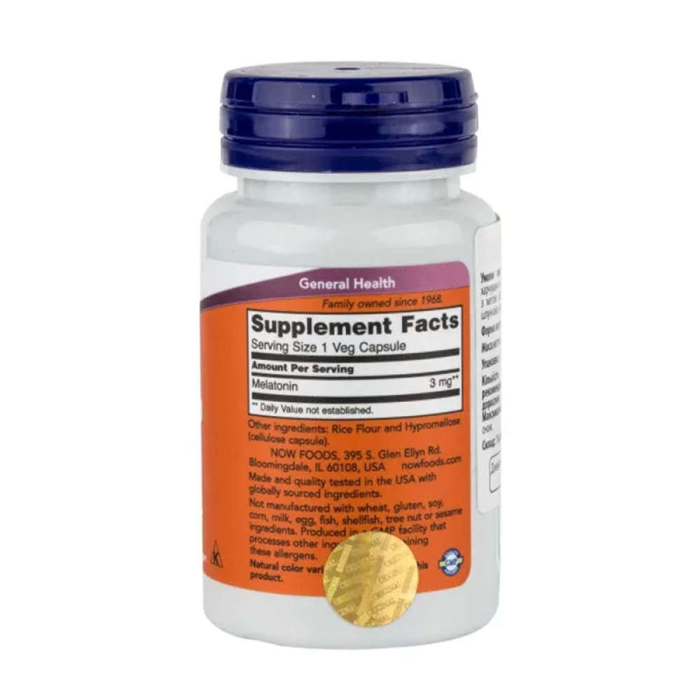 Вітаміни NOW МЕЛАТОНІН 3 мг у капсулах №30