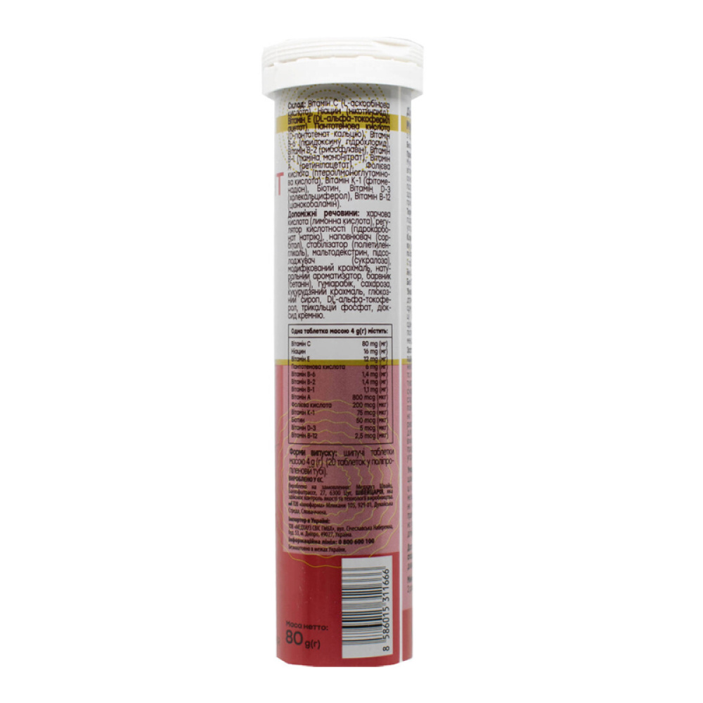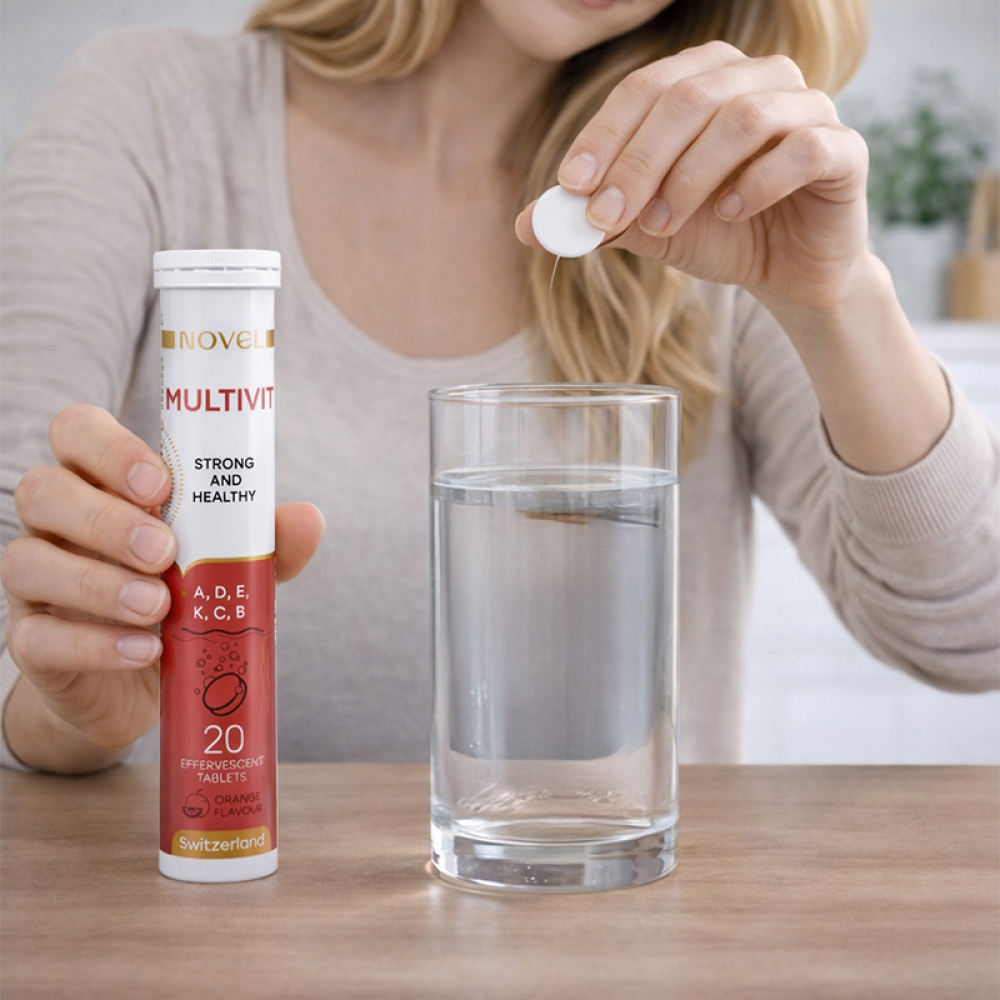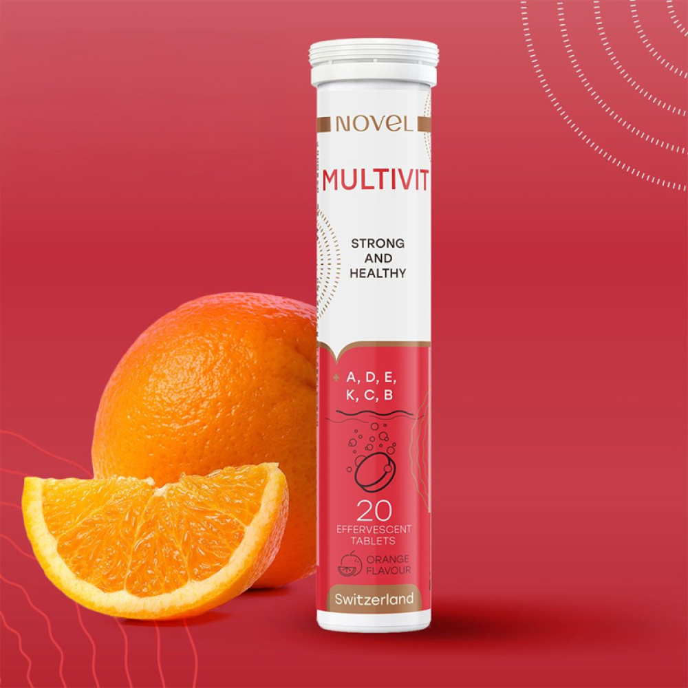 NOVEL Multivit — це комплекс шипучих мультивітамінів, що містить 13 життєво важливих вітамінів, необхідних для підтримки загального здоров’я, енергії та нормального функціонування організму. Формула поєднує вітаміни групи B, а також вітаміни A, C, D, E і K, які беруть участь у метаболічних процесах, підтримують імунну систему та сприяють нормальній роботі нервової системи.