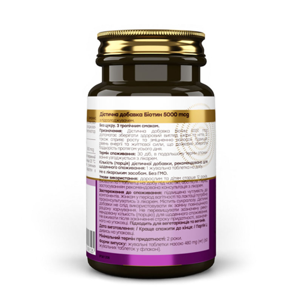 Біотин є незамінним інгредієнтом для ефективної обробки вуглеводів, жирів і білків, що забезпечує енергію і життєву силу. Відчуй приплив енергії, який допоможе тобі залишатися активною та бадьорою протягом усього дня.