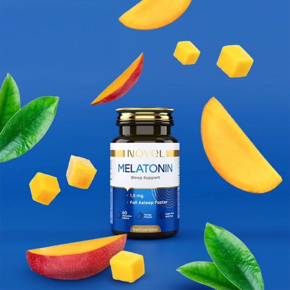 NOVEL Мелатонін 1,5 мг жувальні таблетки — це сучасне рішення для комфортного та здорового сну у форматі смачних жувальних таблеток.