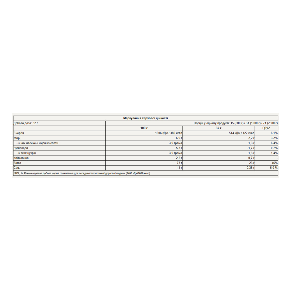 Інформація про алергени: виготовлено на заводі, який переробляє молоко, яйця, глютен, сою, арахіс, лісові горіхи, рибу та інгредієнти ракоподібних.