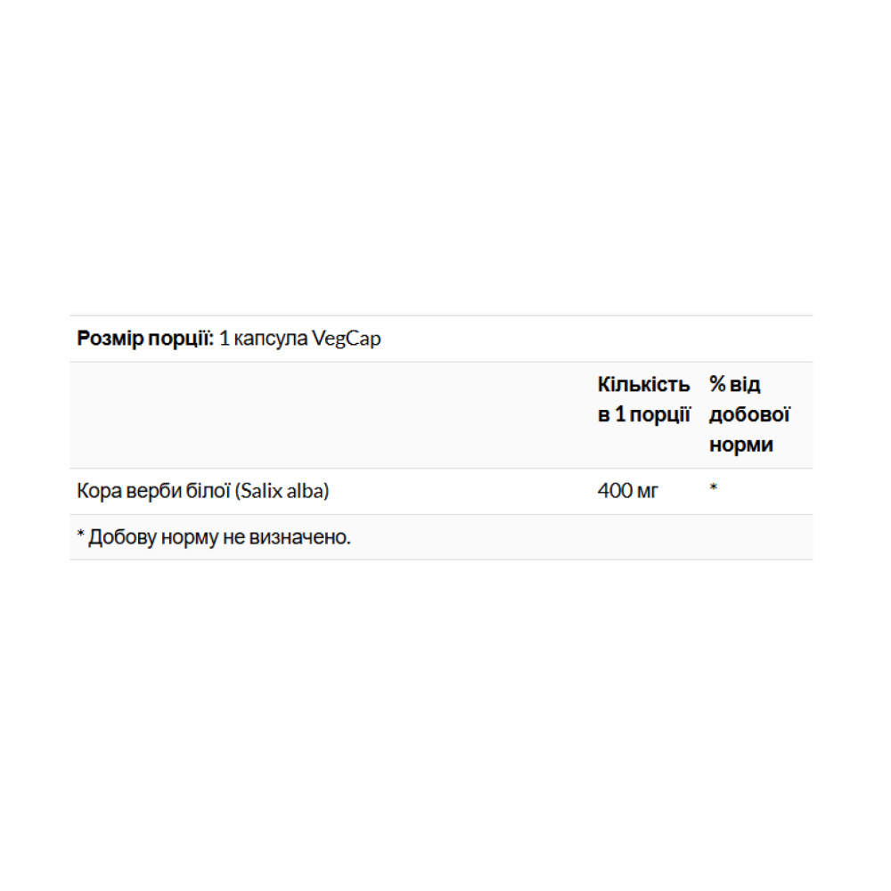 Біла верба (White Willow) - листопадне дерево, що росте у Центральній та Південній Європі. Кора білої верби має довгу історію використання як ліки, починаючи з Стародавнього Єгипту та Греції. Кора білої верби була однією з перших трав, що зазнали наукового вивчення. Кора містить глікозид, відомий як саліцин, який є джерелом його переваг для здоров'я.
