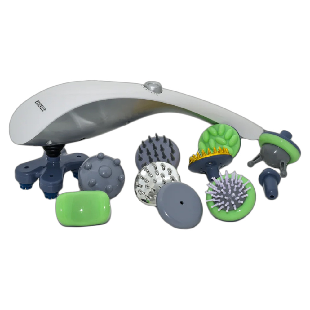 Універсальний електричний вібромасажер із набором насадок для опрацювання різних м’язових груп. Підходить для розслаблення, відновлення після навантажень та косметичного (зокрема антицелюлітного) масажу.
