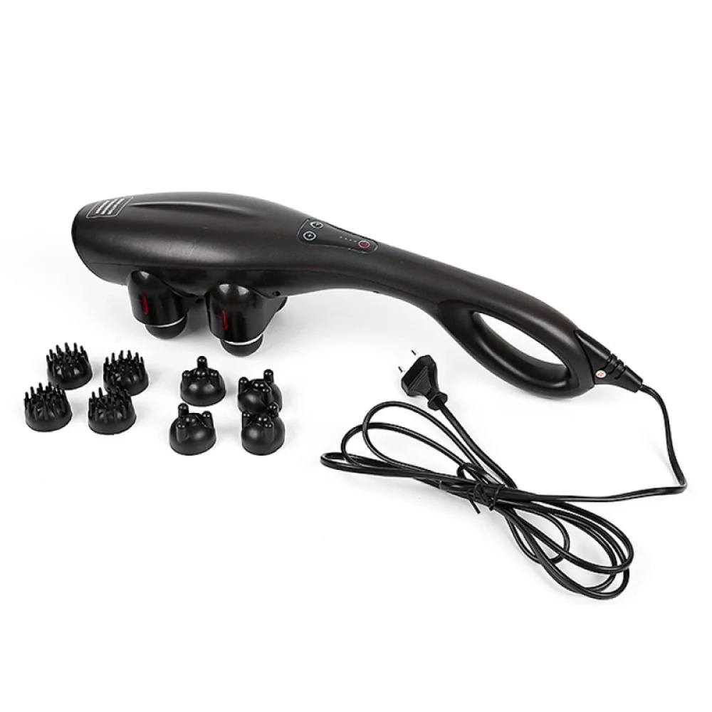 Професійний ручний електромасажер для опрацювання м’язів у домашніх умовах. Завдяки 4 масажним головкам забезпечує інтенсивний масаж, а комплект насадок дозволяє підлаштувати вплив під різні зони тіла.