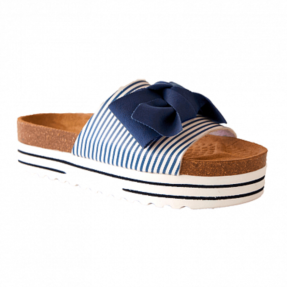 Устілка сандалі незнімна, виконана з композитного матеріалу на основі натуральної пробки (крихта кори коркового дуба), відрізняється гнучкістю та міцністю. Верх виконаний з натуральної шкіри, поверхня устілки виконана з м'якої велюрової шкіри, не викликає алергії. Легка рифлена підошва з поліуретану не ковзає, забезпечує додаткову безпеку при ходьбі.