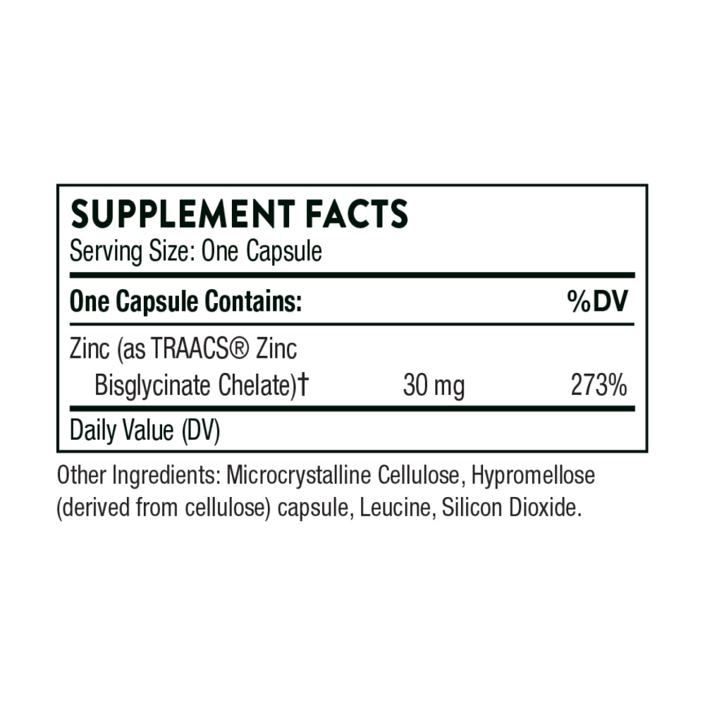Якщо організму важко засвоювати поживні речовини, він не може отримати користь від них. Thorne містить дві легкозасвоювані форми цинку: піколінат цинку та бісгліцинат цинку. Піколінат цинку — це цинк, зв’язаний з органічною піколіновою кислотою, яка природним чином виробляється в організмі з амінокислоти L-триптофану. Бісгліцінат цинку — це цинк, який зв’язується з двома молекулами амінокислоти гліцину, створюючи справжній амінокислотний хелат.