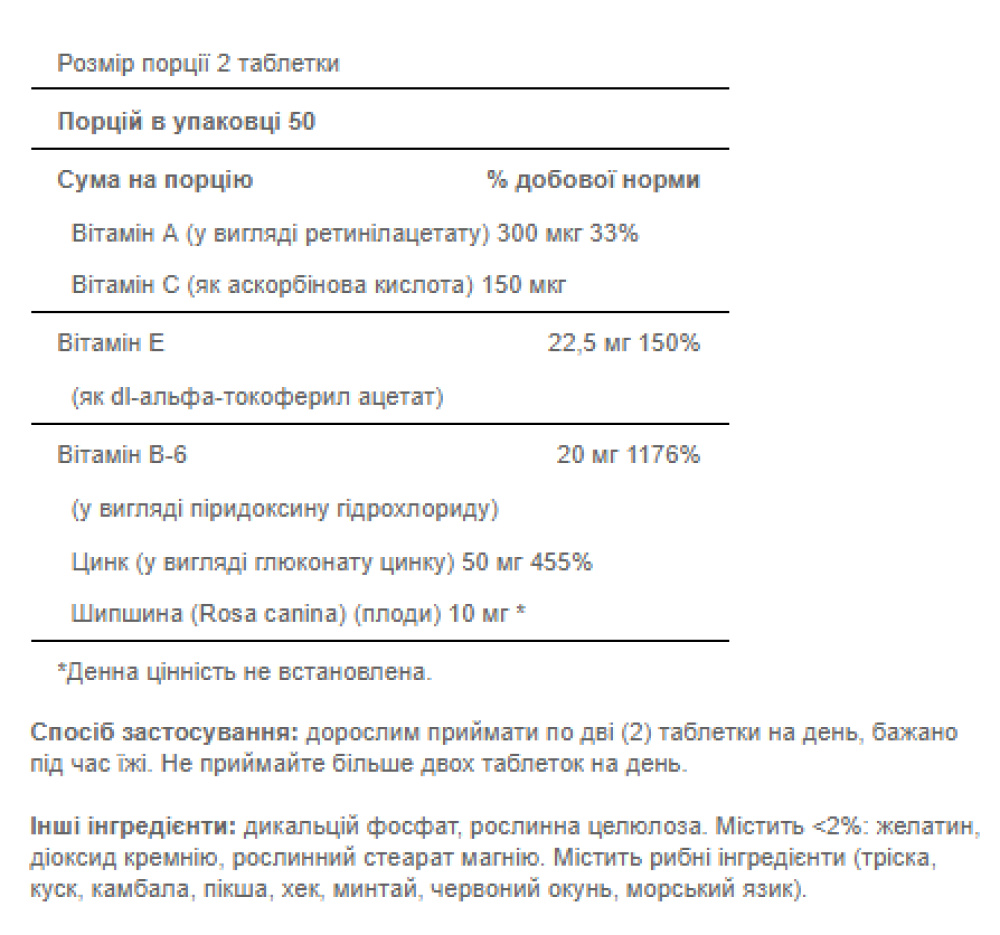Полівітаміни з високоефективною добавкою цинку